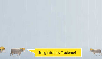 This first round of sheep banners was created in mid 2006 and showed sheep running around in different places, mostly suffering heavy rain. No animals harmed during the shooting, though!